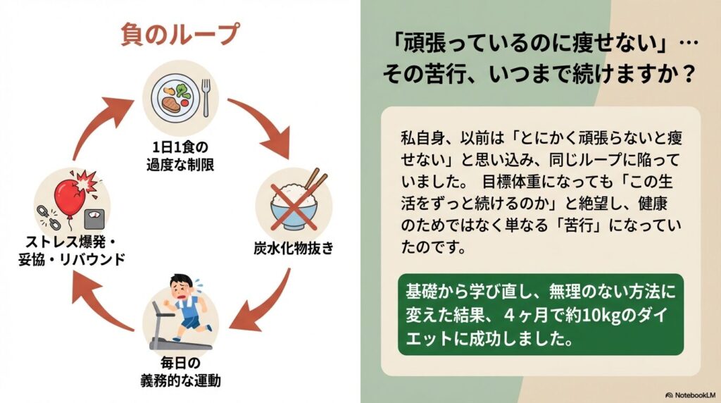 体を「敵」にして戦う(拒食する)のではなく、栄養を与えて「味方」にする(代謝を回す)ことが、リバウンドしない唯一の方法です。