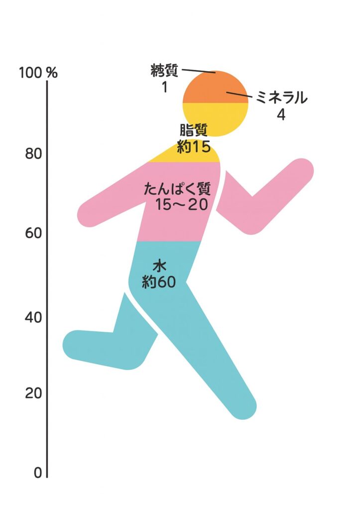 体温調整・血液や細胞の材料・代謝の“運び屋”。水が足りないと体はうまく燃えません。 - たんぱく質:15〜20%