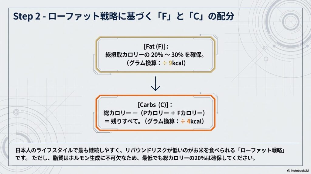 ステップ2:脂質(F)と炭水化物(C)の配分決定プロセス